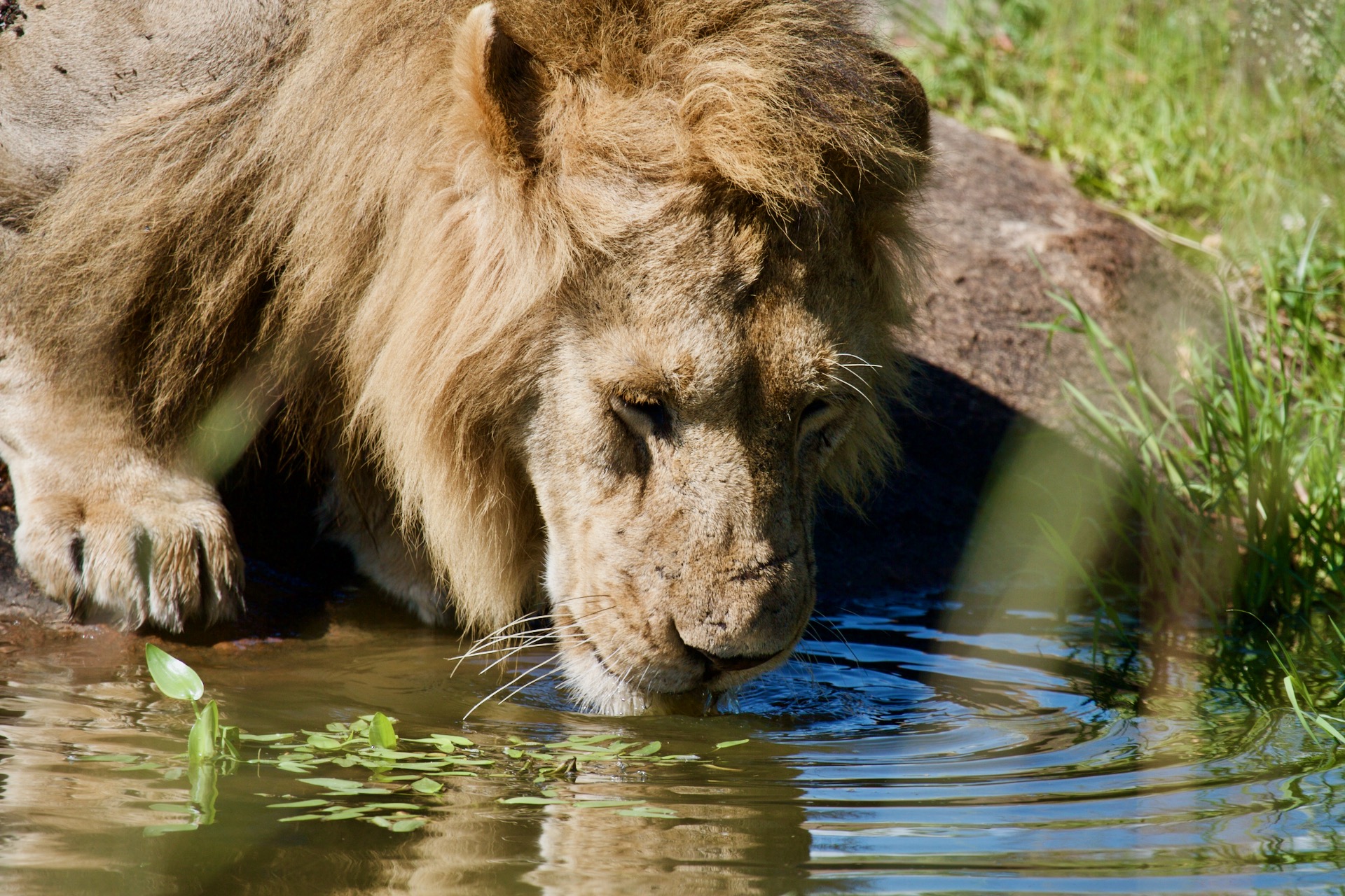 watch as the lion lowers itself down onto it's stomach and starts to lick its paws. I can hear him breath and I watch his chest